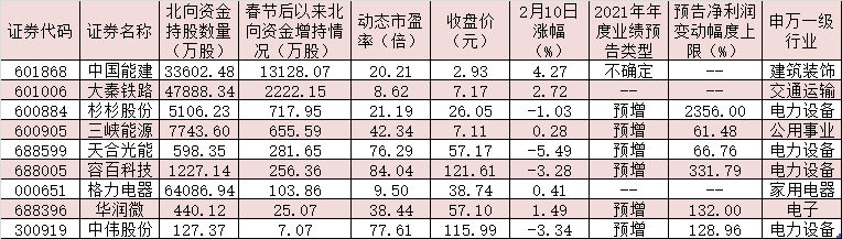 三是北向資金關注度較高。統(tǒng)計發(fā)現(xiàn),截至目前,上述9只個股全部被北向資金持倉,合計北向資金持股數(shù)量達16.08億股,較春節(jié)前的14.34億股增長1.74億股,增幅為12.13%。其中,中國能建、大秦鐵路期間最受追捧,期間北向資金增持數(shù)量分別為13128.07萬股、2222.15萬股,杉杉股份、三峽能源、天合光能、容百科技、格力電器等5只個股期間也均獲得超百萬股北向資金青睞。