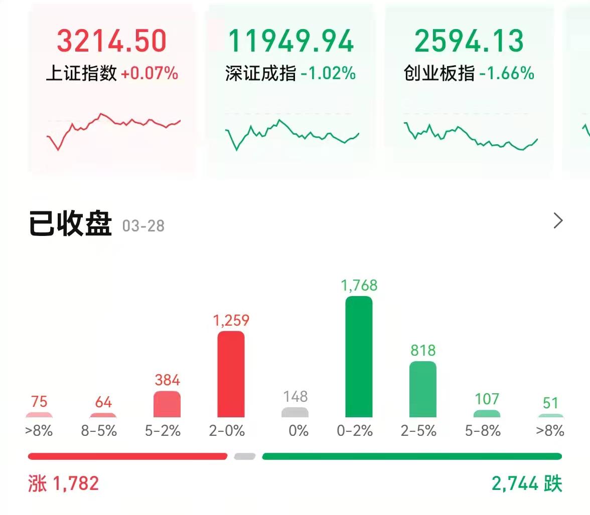 周一,A股三大指數(shù)漲跌不一,有所分化。截至收盤(pán),上證指數(shù)漲0.07%報(bào)3214.5點(diǎn),深成指跌1.02%報(bào)11949.94點(diǎn),創(chuàng)業(yè)板指跌1.66%報(bào)2594.13點(diǎn);兩市合計(jì)成交8704億元,北向資金凈買(mǎi)入50.3億元。