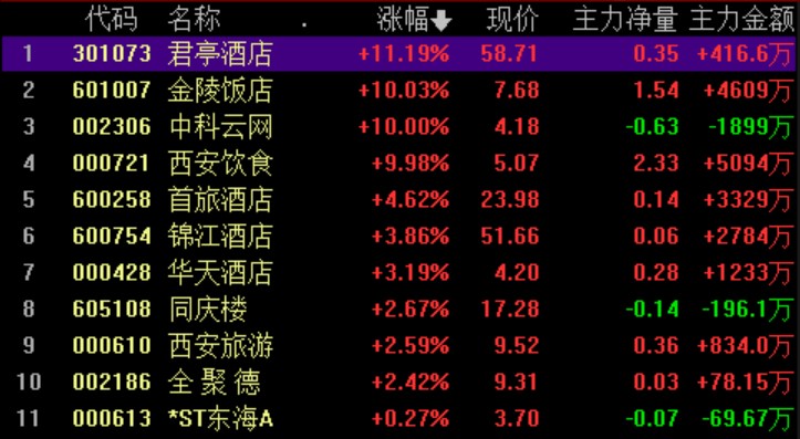 酒店及餐飲板塊開盤后持續(xù)拉升,板塊內(nèi)個股全部實現(xiàn)上漲,其中,金陵飯店、中科云網(wǎng)、西安飲食集體漲停。