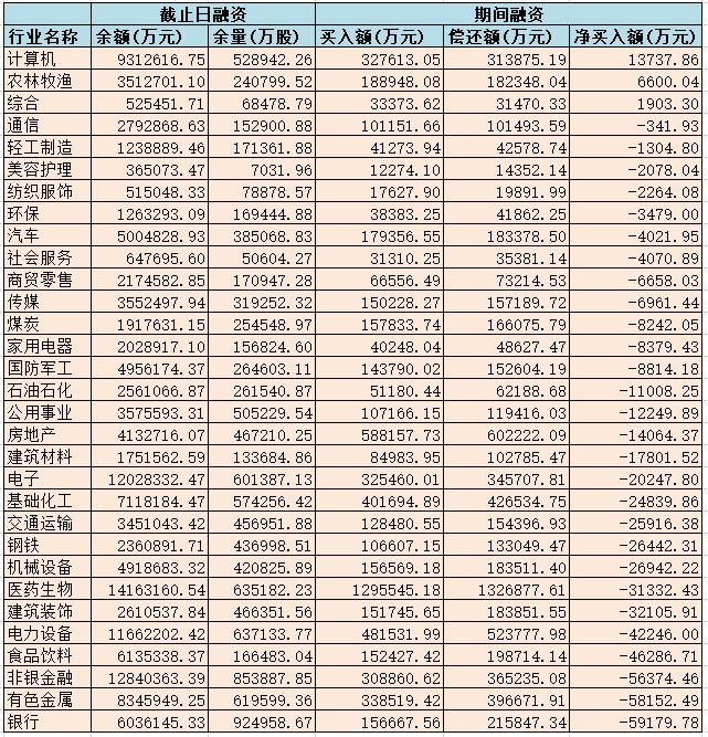 表:3月31日申萬一級行業(yè)兩融交易情況:
