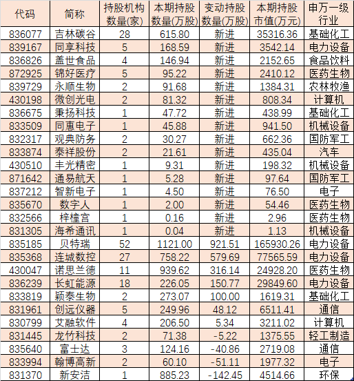 表2:去年四季度獲公募基金持倉的北交所公司股票