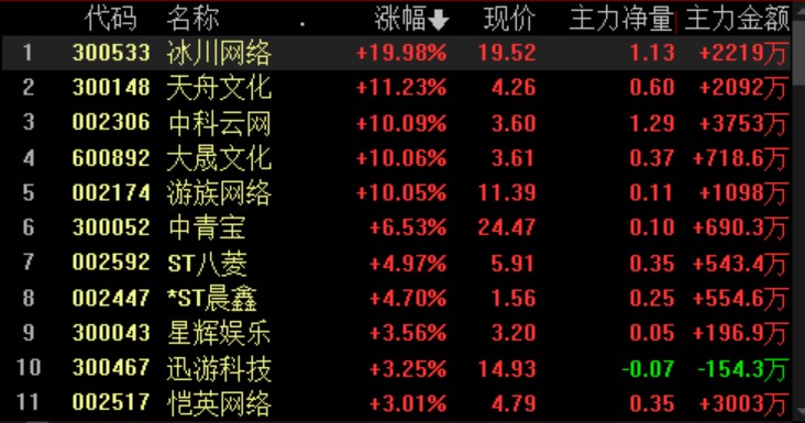 網(wǎng)絡(luò)游戲板塊表現(xiàn)強(qiáng)勢