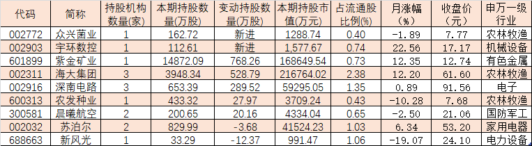 與2021年四季度末相比,QFII新進(jìn)增持7只個(gè)股,今年一季度QFII新進(jìn)持有眾興菌業(yè)、宇環(huán)數(shù)控等2只個(gè)股,QFII持股數(shù)量分別為162.72萬股、112.61萬股。另外,紫金礦業(yè)、海大集團(tuán)、深南電路、農(nóng)發(fā)種業(yè)、晨曦航空等5只個(gè)股今年一季度贏得QFII繼續(xù)加倉。