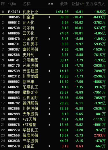 冰點:化肥板塊下跌6.91%