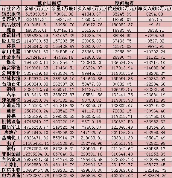 表:4月22日申萬一級行業(yè)兩融交易情況: