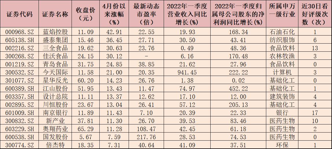 表:4月份以來(lái)漲幅超7%的業(yè)績(jī)雙增長(zhǎng)股一覽