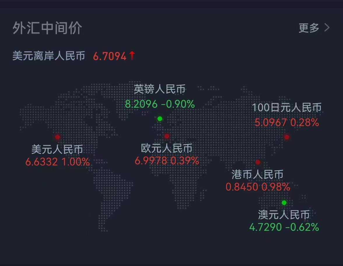 周五在岸人民幣兌美元16:30收盤報6.6845,較上一交易日跌621個基點(diǎn),本周兩個交易日累計下跌979個基點(diǎn);夜盤收報6.6651,較上一交易日夜盤跌116個基點(diǎn)。