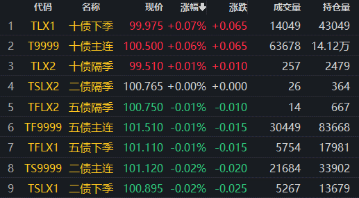 2022年5月6日,國債期貨各品種主力合約窄幅震蕩。截至下午收盤,十年期主力合約漲0.06%;五年期主力合約跌0.01%;二年期主力跌0.02%。