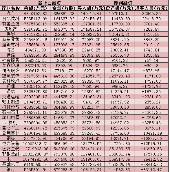 表:5月13日申萬一級行業(yè)兩融交易情況: