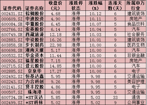 表:連續(xù)5日上漲且今日漲停股情況: