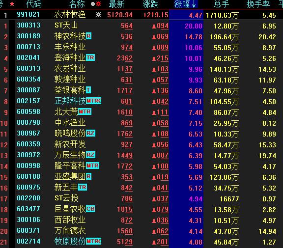 農(nóng)林牧漁板塊領(lǐng)漲