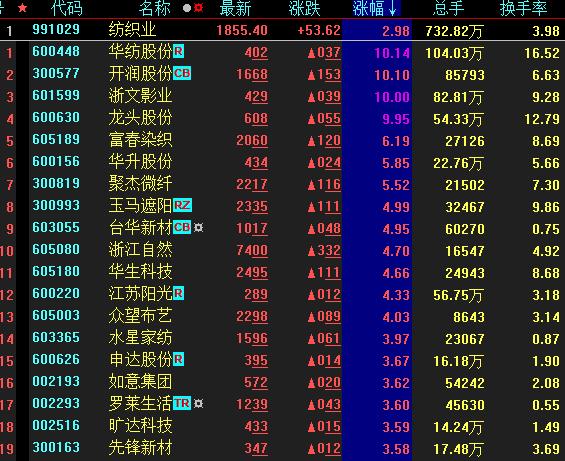紡織業(yè)板塊領(lǐng)漲