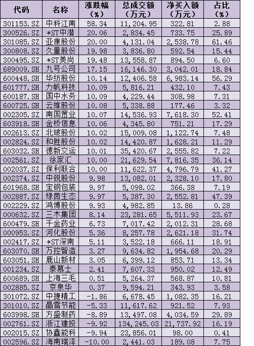 表:周三(5月18日)個股搶籌龍虎榜情況