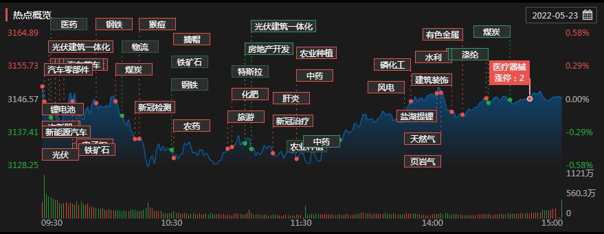 具體來看,5月23日,汽車整車板塊領(lǐng)漲,中通客車、亞星客車等個(gè)股多只個(gè)股漲停;黑色金屬、化肥、轉(zhuǎn)基因、鹽湖提鋰等板塊表現(xiàn)活躍;露營(yíng)經(jīng)濟(jì)板塊領(lǐng)跌,酒店及餐飲、租售同權(quán)、機(jī)場(chǎng)航運(yùn)、物業(yè)管理等板塊跌幅居前。
