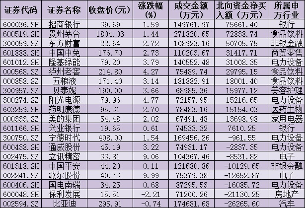值得關(guān)注的是,北向資金今日呈凈流入態(tài)勢,全天凈買入138.65億元。其中,招商銀行、貴州茅臺(tái)、東方財(cái)富等3只個(gè)股,凈買入金額均超5億元。