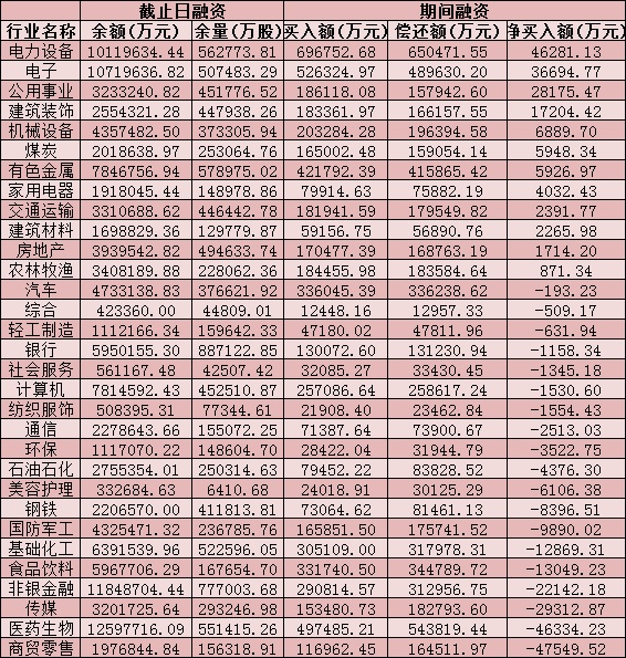 表:5月31日申萬一級行業(yè)兩融交易情況: