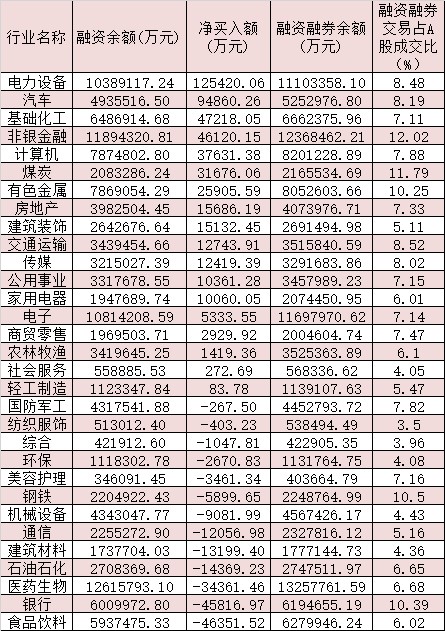 表:6月8日申萬(wàn)一級(jí)行業(yè)兩融交易情況: