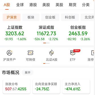 6月14日上午,A股三大指數(shù)集體低開低走,創(chuàng)業(yè)板指數(shù)跌超3%。截至上午11:30,上證指數(shù)跌1.6%,報(bào)3203.62點(diǎn);深證成指跌2.72%,報(bào)11672.73點(diǎn),創(chuàng)業(yè)板指跌3.26%,報(bào)2463.59點(diǎn);滬深兩市合計(jì)成交額6677億元;總體來看,A股市場個股跌多漲少,上漲個股為507只,下跌個股4255只。