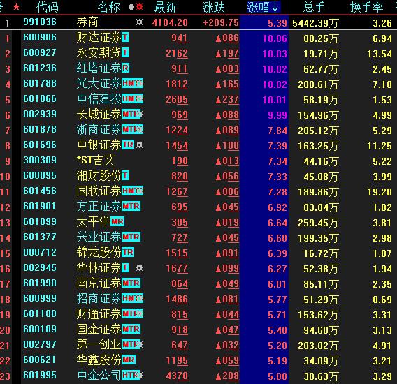 券商板塊飆升逾5%