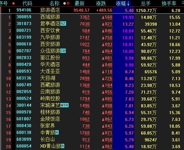 6月28日,從熱門板塊來看,旅游酒店板塊漲幅居首,達5.4%。其中,7只個股漲停,西域旅游20CM漲停。
