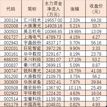表:6月28日受到超千萬元主力資金追捧的工業(yè)母機概念股