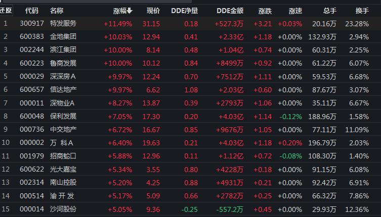6月29日,房地產(chǎn)行業(yè)逆市上揚,漲幅居首達3.41%。其中,金地集團、魯商發(fā)展、濱江集團、深深房A、信達地產(chǎn)等5只地產(chǎn)股集體漲停。