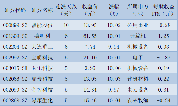表:連續(xù)上漲5天且今日收盤漲停股一覽