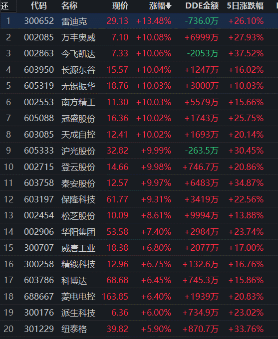 從漲停股最多的汽車零部件行業(yè)看,截至7月19日11:30,行業(yè)交易中的196只個股,有151只上漲,其中,有10只個股漲停,有24只個股漲幅超5%。從資金流向看,汽車零部件行業(yè)今天上午大單資金凈流入額達(dá)5.77億元,居各行業(yè)第2位。