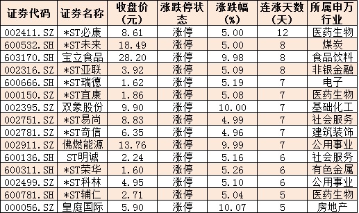 表:今日漲停且連漲5日以上的個股情況: