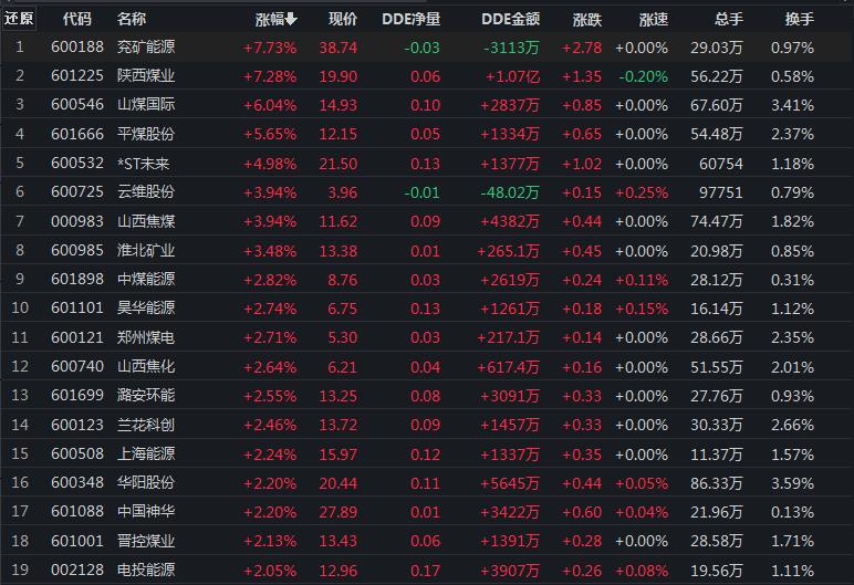 8月8日,煤炭行業(yè)漲幅居首達(dá)3.25%。其中,兗礦能源、陜西煤業(yè)、山煤國(guó)際、平煤股份等個(gè)股漲幅均超5%。