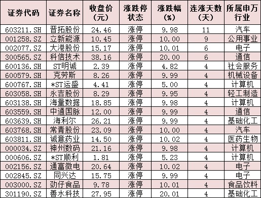 表:今日漲停且連漲4日以上的個(gè)股情況: