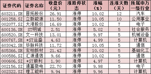 表:今日漲停且連漲5日以上的個(gè)股情況: