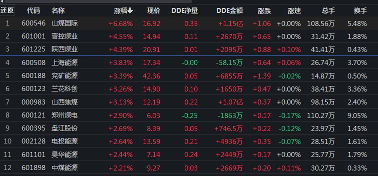 8月12日,煤炭行業(yè)漲幅居首達(dá)2.41%。其中,山煤國際、晉控煤業(yè)、陜西煤業(yè)等煤炭股漲幅居前,均超4%。