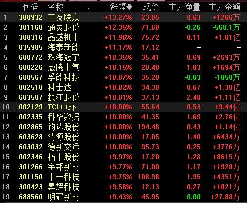 8月15日,申萬(wàn)一級(jí)行業(yè)中電力設(shè)備強(qiáng)勢(shì)上漲,漲幅達(dá)3.35%,主力資金凈流入達(dá)64.44億元。行業(yè)311只交易中的個(gè)股,有274只上漲,其中,包括川潤(rùn)股份、科士達(dá)、振江股份、TCL中環(huán)、科華數(shù)據(jù)、清源股份等在內(nèi)的10只個(gè)股集體漲停。