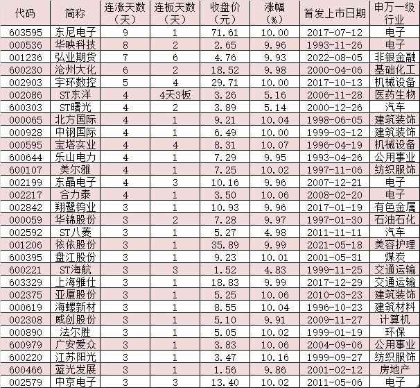表:連續(xù)上漲3天且今日收盤(pán)漲停股一覽