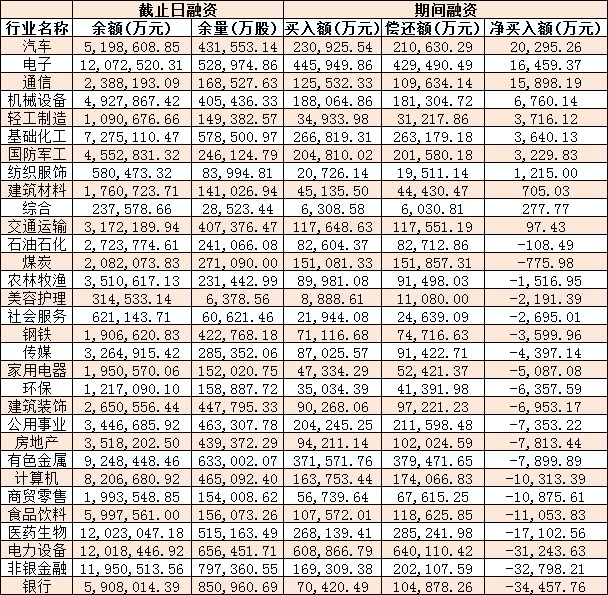 表:9月8日申萬一級(jí)行業(yè)兩融交易情況: