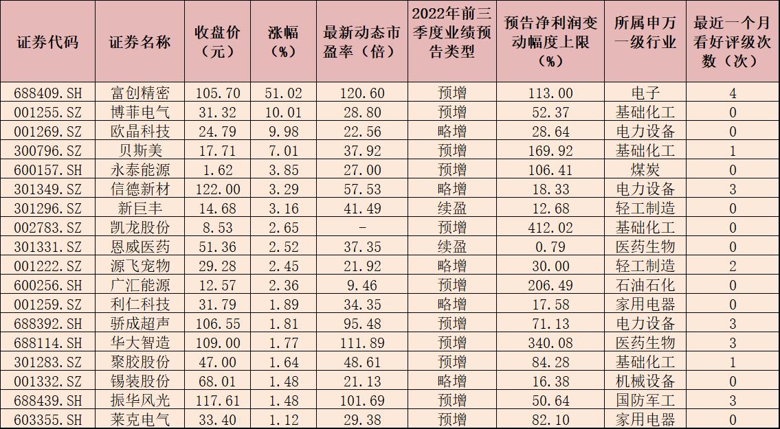 表:10月10日漲幅超1%的預(yù)喜股一覽