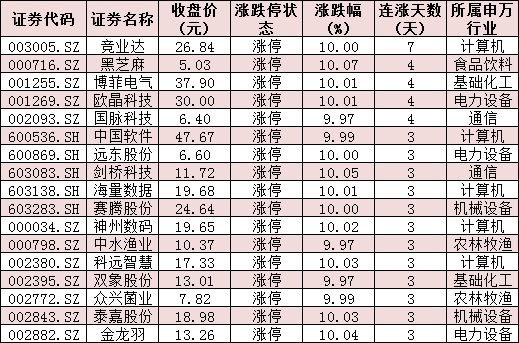 表:連續(xù)上漲3日且今日收盤(pán)漲停個(gè)股情況: