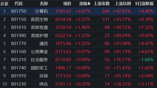 計(jì)算機(jī)行業(yè)領(lǐng)漲