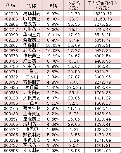表:10月18日主力資金凈流入超千萬(wàn)元的中藥概念股