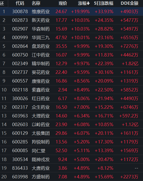 10月18日,同花順行業(yè)中中藥行業(yè)領(lǐng)漲,漲幅達(dá)3.77%,獲得10.06億元大單資金的凈流入,居第二位。行業(yè)75只交易中的個(gè)股,有73只上漲,占比97.33%,其中,18只個(gè)股漲幅超5%。