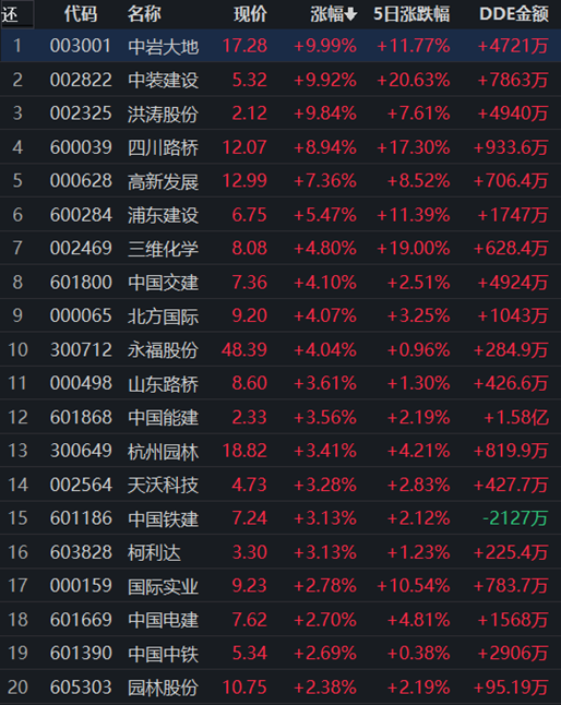 10月21日,申萬一級行業(yè)中建筑裝飾行業(yè)領(lǐng)漲,漲幅達(dá)1.45%,獲得2.66億元大單資金的凈流入,居第三位。行業(yè)157只交易中的個(gè)股,有92只上漲,占比58.60%,其中,6只個(gè)股漲幅超5%。