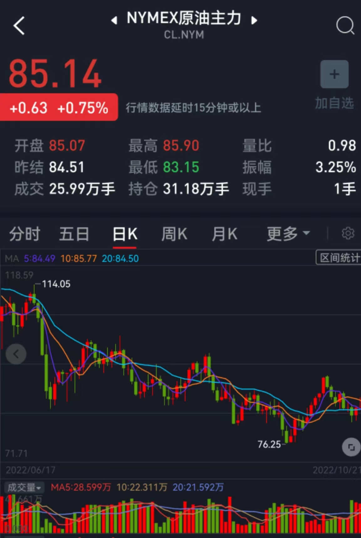 周五,國際油價全線上漲,美油12月合約漲0.75%,報85.14美元/桶。布油12月合約漲1.32%,報93.6美元/桶。本周,美油12月合約跌0.55%,布油12月合約漲2.15%。