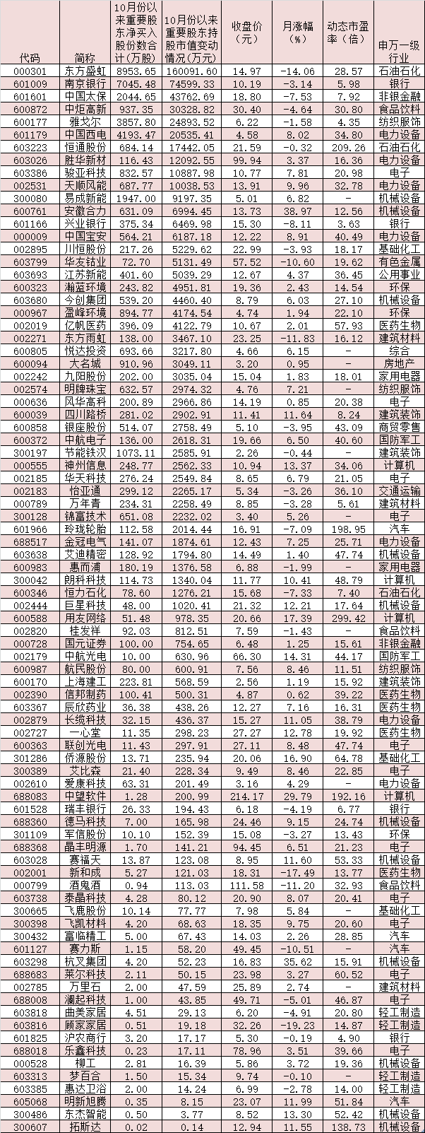 表:10月份以來獲重要股東凈增持的公司一覽