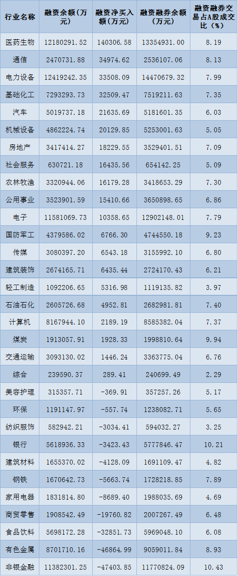 表:11月16日申萬一級行業(yè)兩融交易情況: