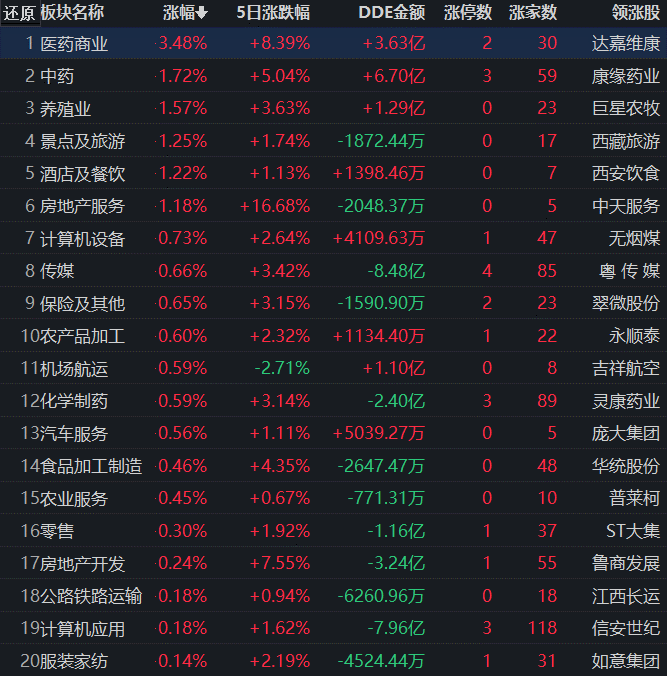 從早盤表現(xiàn)強勢的醫(yī)藥商業(yè)行業(yè)看,截至11月17日11:30,該行業(yè)交易中的31只個股有30只上漲,其中8只漲幅超5%。從資金流向看,該行業(yè)今天上午大單資金凈流入額達3.63億元,居行業(yè)第2位。
