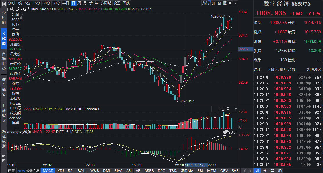受利好催化,11月17日早盤,同花順數(shù)字經(jīng)濟(jì)概念板塊漲0.11%,跑贏上證指數(shù)(跌幅1%)。11月1日至11月16日,數(shù)字經(jīng)濟(jì)概念板塊期間累計上漲7.14%,在板塊全部118只個股中,共有93只實現(xiàn)上漲,占比78.81%。個股方面,福石控股(86.55%)、三湘印象(83.39%)、二六三(56.71%)3只個股期間累計漲幅均超50%。