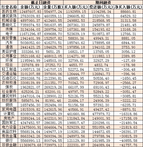 表:11月22日申萬一級行業(yè)兩融交易情況: