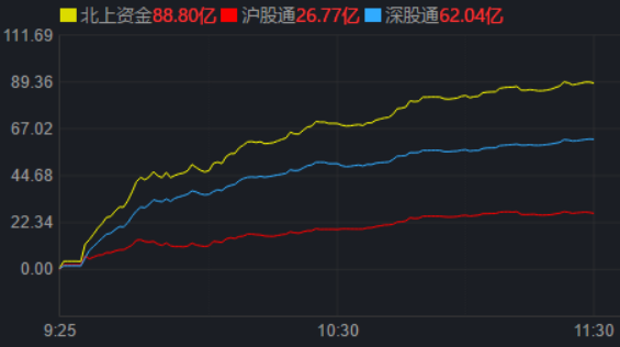 從資金面來看,12月1日上午,北上資金凈買入金額達88.80億元。