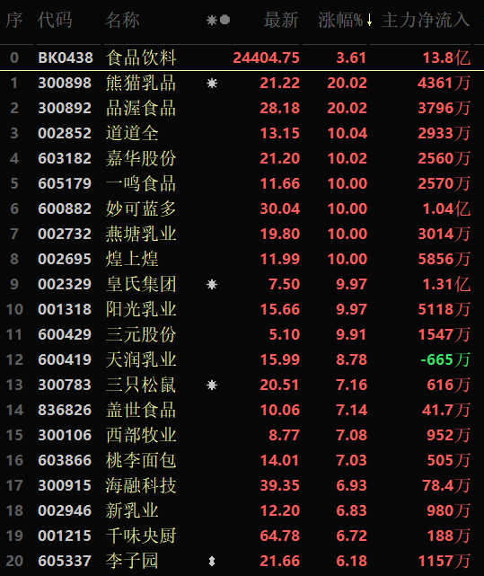 從早盤表現強勢的食品飲料行業(yè)看,截至12月1日11:30,該行業(yè)交易中的118只個股,有111只上漲,其中25只漲幅超5%。從資金流向看,該行業(yè)今天上午大單資金凈流入額達13.8億元,居行業(yè)第3位。
